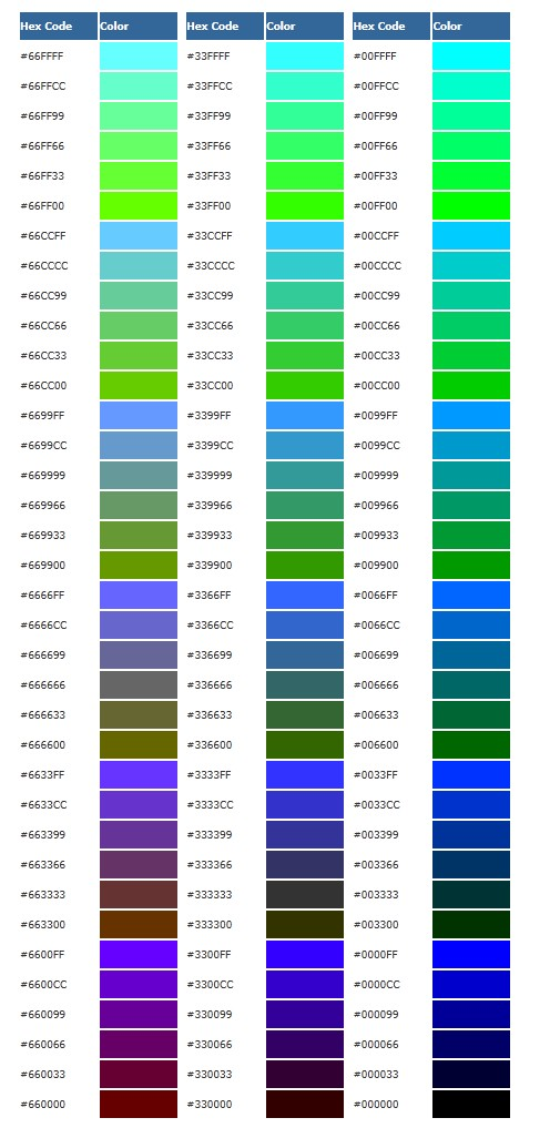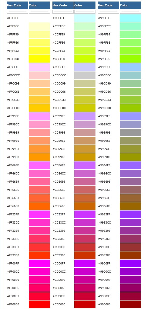 传世文字颜色16进制颜色代码表